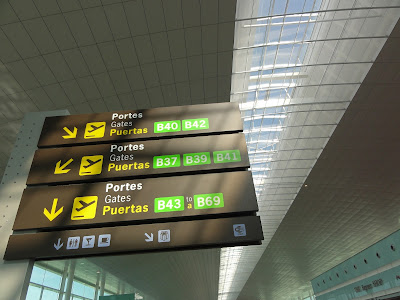 (BCN機場,好喜歡這張,尤其是指示牌與天窗,既然在Barcelona,Català順位一定要排第一的)