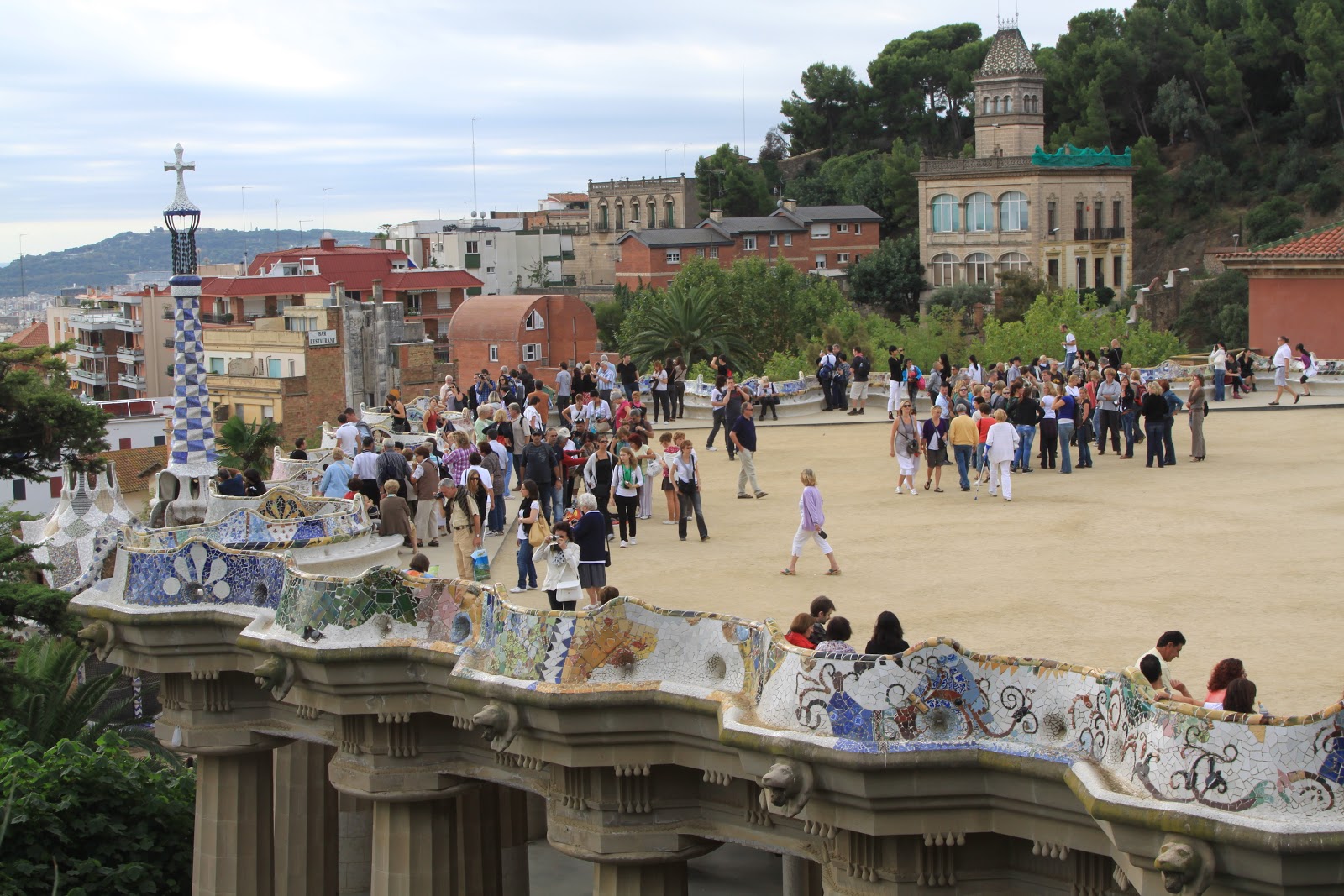 早上,花了2.5歐吃Hostel的早餐(但大部分住戶都是從超市買東西,借廚房料理XD)搭地鐵前往奎爾公園(Parc Güell),在Vallcarca出站,然後一路往上坡,大約要走個1公里,雖然有登山電梯,還是有點累。