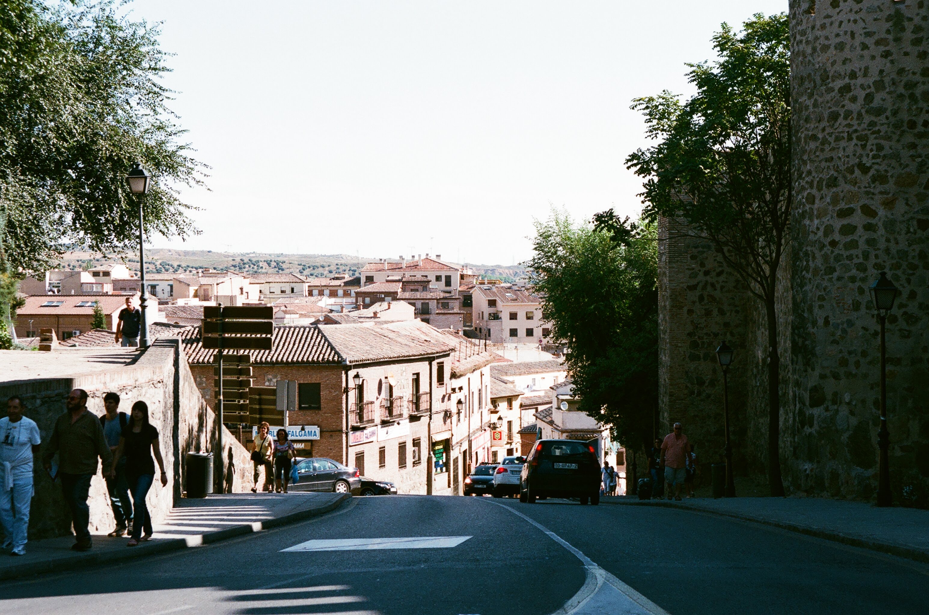 10:20搭乘RENFE Avant前往Toledo。AVANT和AVE走的是一樣的軌道,AVE跑中長程,AVANT則是跑短程,車廂內座位不多,位置寬敞,坐起來挺爽的XD 半小時後,我們在美麗的Toledo車站下車,沿著公路一路走上坡,切過太加斯河(Rio Tajo),來到城牆外,首先映入眼簾的是Puerta Nueva de Bisagra,繼續走一段後,來到了太陽門,沿著內城外圍又走了一段,開始往城內切入,地圖在這種古老小鎮幾乎無用武之地,所以就跟著遊客隨興亂走,小鎮的迷人的風采只有慢慢散步才能充分體會