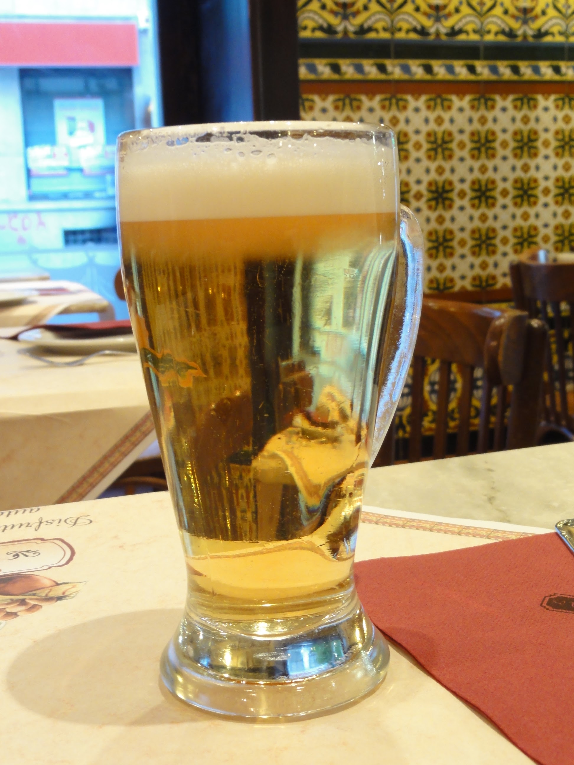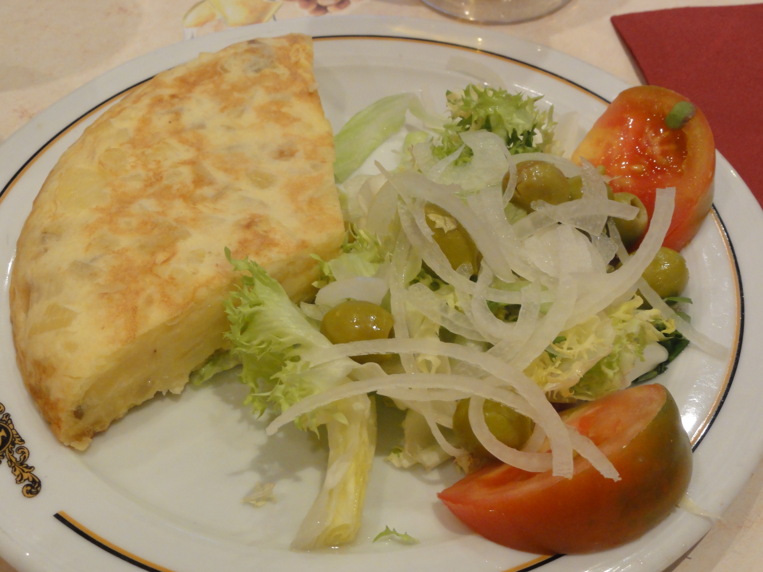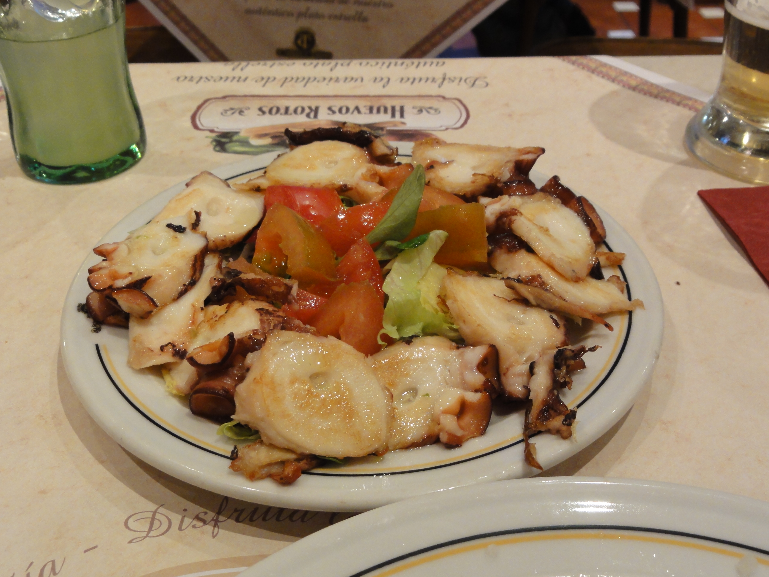 藝術饗宴之後,輪到味蕾的饗宴,走回旅館的途中經過一間餐館Cañas y Tapas,點了幾盤Tapas(西班牙人的下酒小菜):Tortilla Española(馬鈴薯烘蛋,好吃!!)、Calamares(花枝圈,嚼勁不夠,台灣的比較好吃)、烤蘑菇沾大蒜醬(本日最美味~!)、烤章魚(吃起來軟軟的,不像認知中的章魚口感,反而有魚肉的FU~),今天終於不用再吃薯條了Oh ya