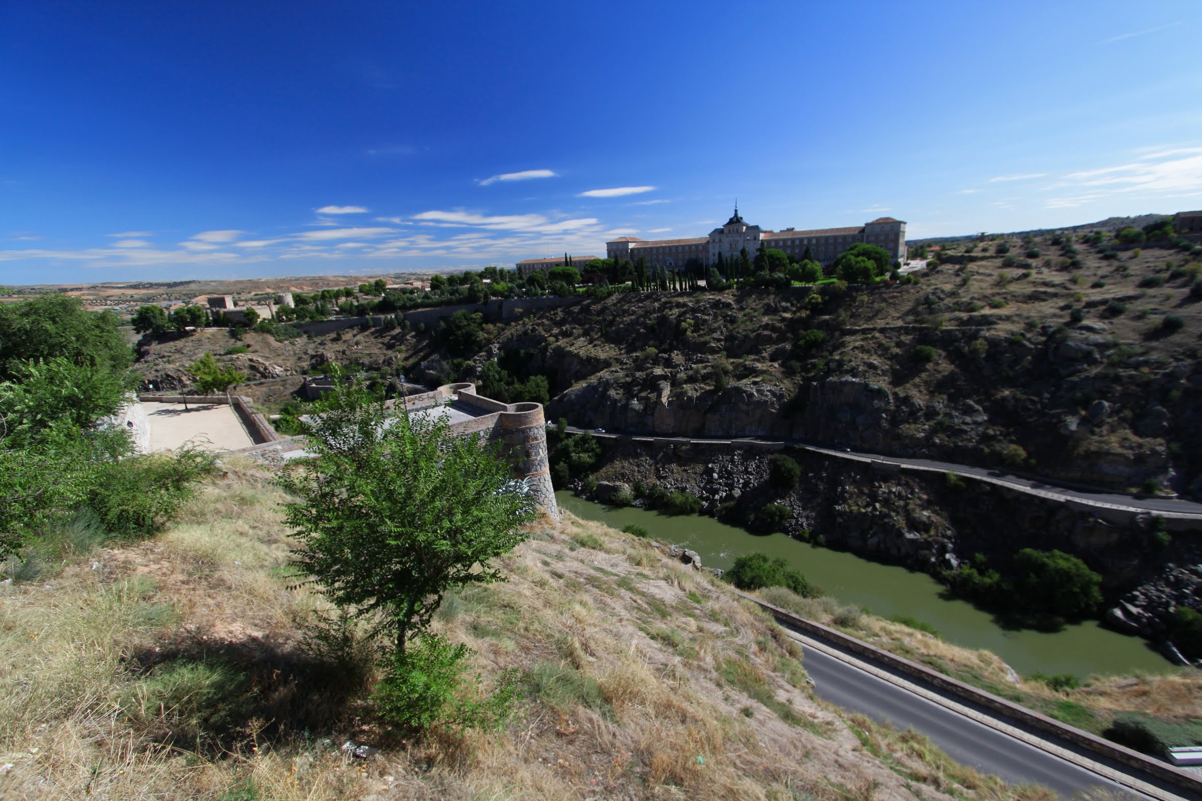 | Alcázar附近有個廣場,視野非常開闊,可以欣賞護城河外的景色,對面那幢建築物是步兵學院,Academia de Infantería |