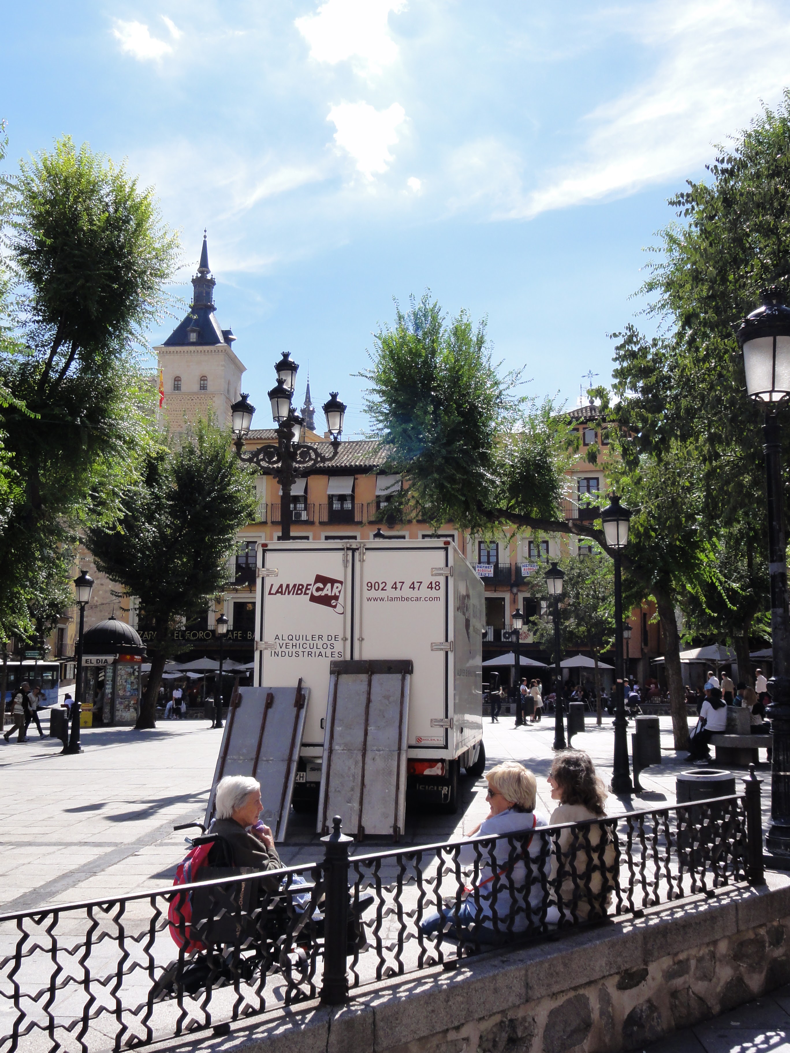 | Plaza de Zocodover,很美的廣場,喜歡幾個婦人在陽光下坐著聊天的畫面,如果少了那台貨車就更棒了。 |