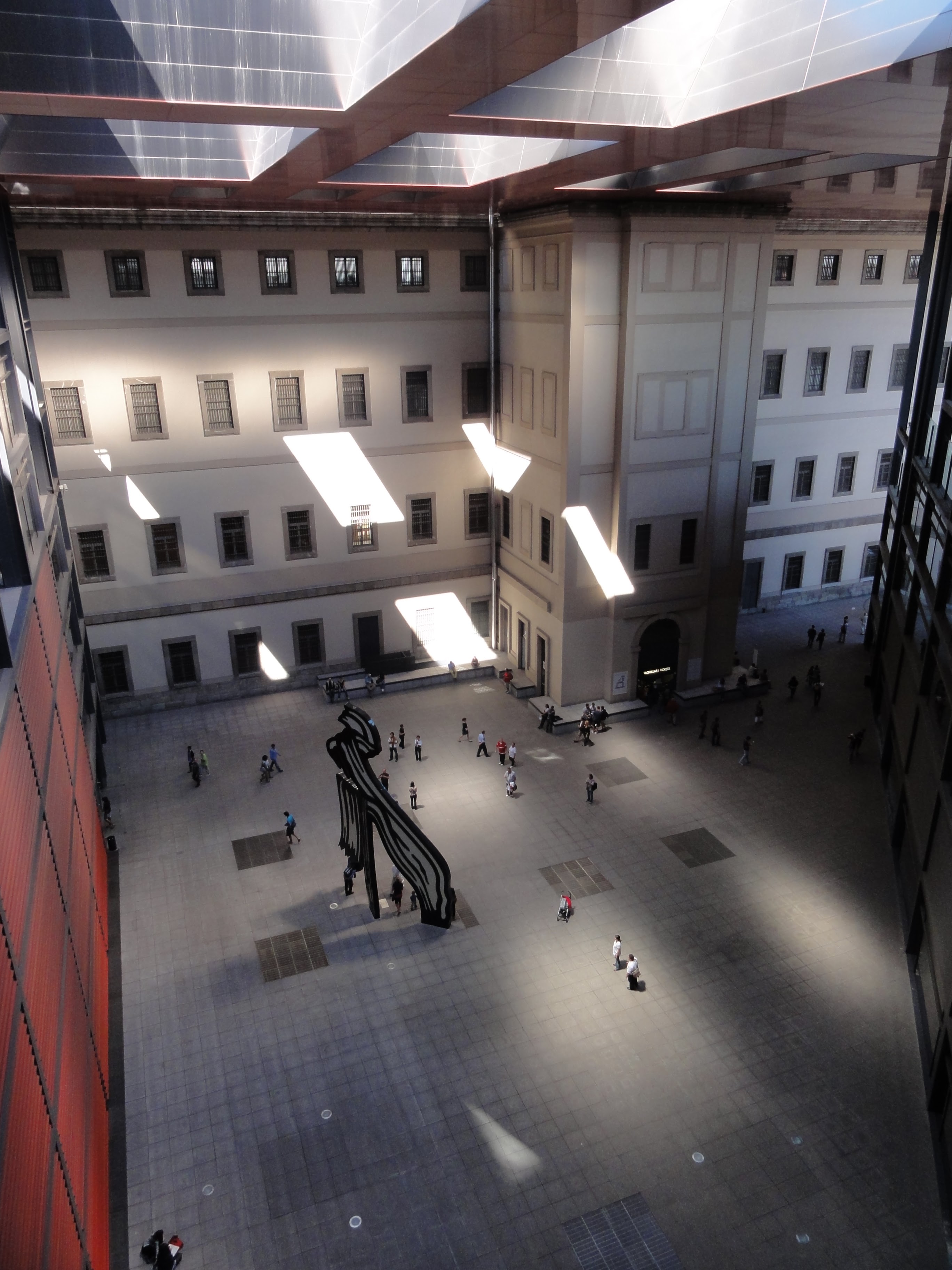 出了Atocha火車站,徒步前往索菲亞王后國家藝術中心博物館 (Museo Nacional Centro de Arte Reina Sofia),假日入館免費。頂樓風景不錯,可將周圍的市景一覽無遺。