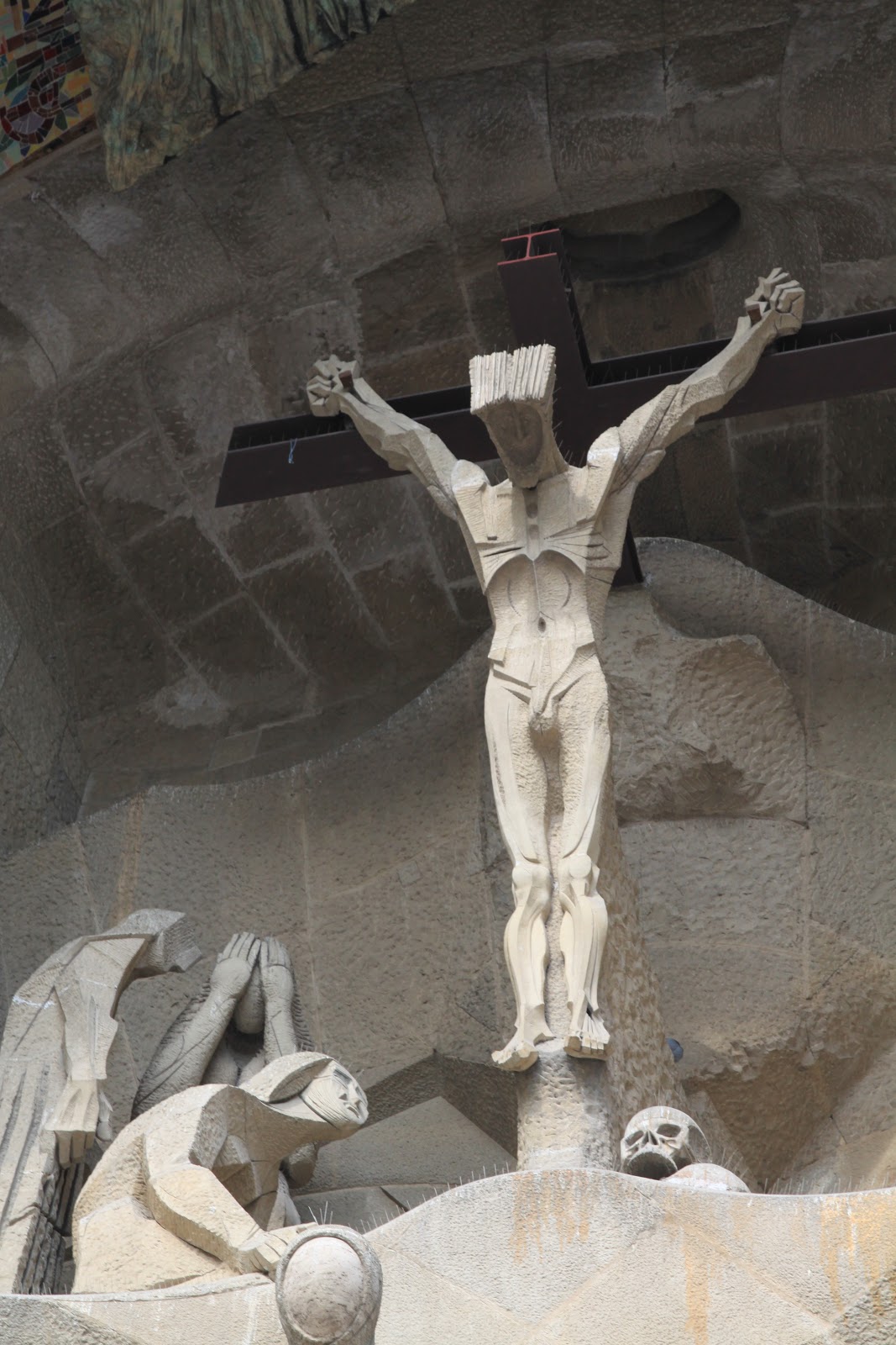 (耶穌受難立面的雕塑風格較為簡鍊,線條陽剛)