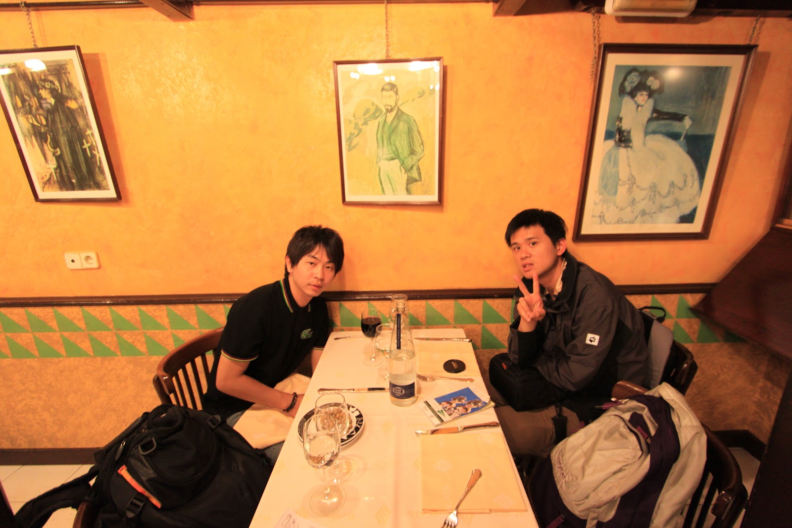 Hostel的浴室非常小,沒有蓮蓬頭的淋浴設備,水要一直按才會出來,熱水也是偶爾才會出來一下,怪的是,洗手台的水明明很燙,更囧的是,我們沒有吹風機,櫃檯外借的也早已不知下落,最後只能很克難地用烘手機吹頭髮(如果是之前那種長髮我會很想哭)...無線網路的訊號很弱,後來還偷用別人沒鎖的。