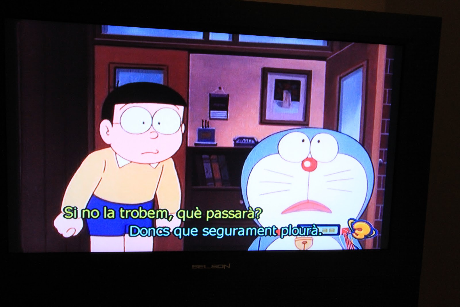 早上起床,一邊收拾行囊,一邊看飯店的電視,沒想到居然有多拉A夢,而且還是加泰隆尼亞文的配音及字幕,整個妙極了。